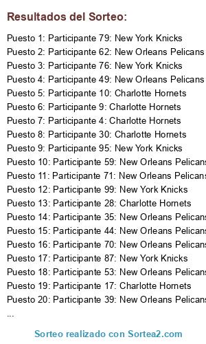 - Puesto 2: Participante 62: New Orleans Pelicans