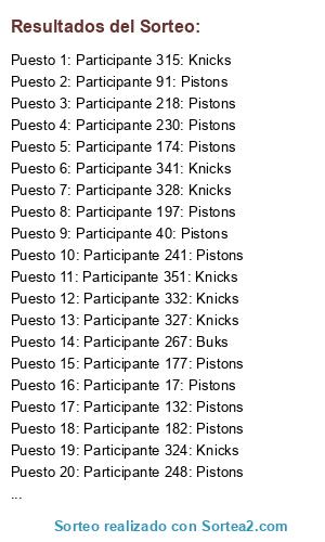 Lista de participantes: Pistons (253), Buks (57), Knicks (56).