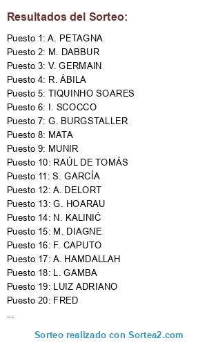 Lista de participantes: B. EMBOLO, S. GARCÍA, M. DABBUR, G. LABORDE, RAÚL DE TOMÁS, DJANINY, M. KEAN, DYEGO SOUSA, I. SLIMANI, LUIZ ADRIANO, N. LÓPEZ, N. KALINIĆ, A. HAMDALLAH, MATA, A. PETAGNA, A. MITROVIĆ, S. RONDÓN, I. SCOCCO, V. GERMAIN, J. SAND, R. ÁBILA, G. HOARAU, A. DELORT, Y. POULSEN, N. JØRGENSEN, F. CAPUTO, L. GAMBA, FRED, M. DIAGNE, MUNIR, G. BURGSTALLER, G. SIMEONE, A. MUSA, TIQUINHO SOARES, O. AL SOMA, JORGE MOLINA.