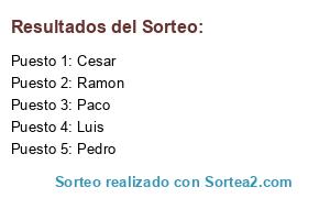 Lista de participantes: Paco(8 participaciones), Luis(7 participaciones), Pedro(6 participaciones), Ramon(5 participaciones), Cesar(20 participaciones).
