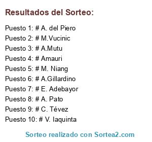 Lista de participantes: # F. Kanouté, # A. Pato, # A. del Piero, # Amauri, # A.Mutu, # E. Adebayor, # A.Gillardino, # C. Tévez, # M. Niang, # M.Vucinic, # V. Iaquinta.