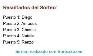 Lista de participantes: Christie, Amadus, Diego, Natalie, Renzo.