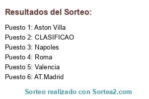 Lista de participantes: Aston Villa, Roma, Napoles, AT.Madrid, Valencia, CLASIFICAO.