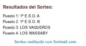 Lista de participantes: 1º E.S.O. B, LOS VAQUEROS, 1º E.S.O. A, LOS WASSABY.