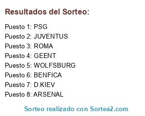 Resultados del sorteo: