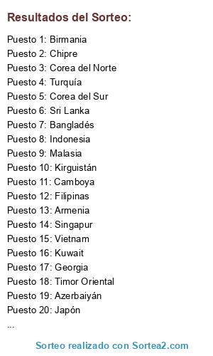 Lista de participantes: Arabia Saudita, Afganistán, Armenia, Azerbaiyán, Bangladés, Baréin, Birmania, Bután, Camboya, Catar, Chipre, Corea del Norte, Corea del Sur, Emiratos Árabes Unidos, Filipinas, Georgia, Indonesia, Irak, Irán, Israel, Japón, Jordania, Kazajistán, Kirguistán, Kuwait, Laos, Líbano, Malasia, Maldivas, Mongolia, Nepal, Omán, Pakistán, Singapur, Siria, Sri Lanka, Tailandia, Tayikistán, Timor Oriental, Turkmenistán, Turquía, Uzbekistán, Vietnam, Yemen.