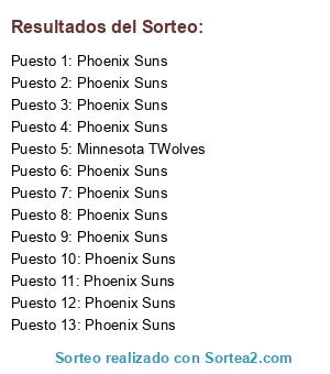 - Puesto 12: Phoenix Suns