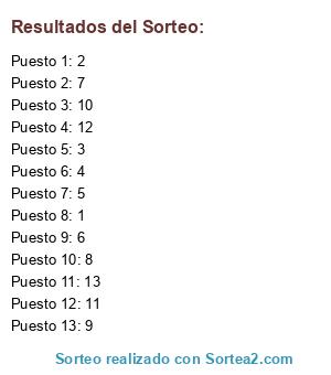 Resultados del sorteo: