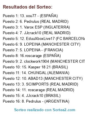 Resultados del sorteo: