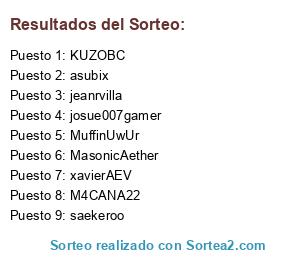 Lista de participantes: TyAlppha, drkvalles, madmax1702, akira_lul, MYSTICKE95, ironvero01, saiyajhinx, elsenpa_i, carpuliano38, Escaliodass, josue007gamer, Erink64, D0ctorAlan, Menesesitas17, DaRoTu02, david_darek, 8hache8, Lucker0811, problemasdenat, rekyjm, lagzkun, 1Snorr, JoseSnow13, chostito26xd, xavierAEV, gorditomino, 407NickNotFound, MasonicAether, kurolaos, Charti92, jsm_lag06, jeioskt, saekeroo, MuffinUwUr, elhuezito, Mostroloco7, M4CANA22, videlsama2, jeanrvilla, KUZOBC, Ebensatt87, TheLalelo, walkin73, 77hanna007, gylogic, lachurca1, gabrielitocepeda, sirkrischop, LiderGoGames, juancucrack, firehoop23, moisesplay1709, slowtft, asubix.