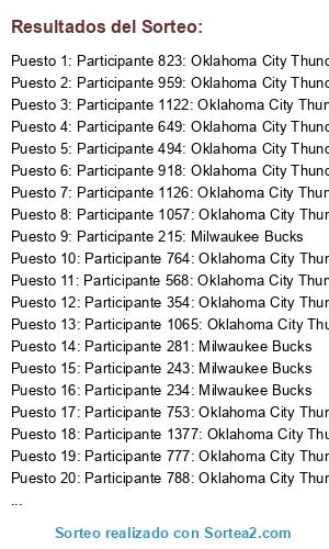 - Puesto 1: Participante 823: Oklahoma City Thunder