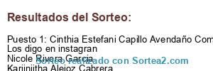 - Ganador: Cinthia Estefani Capillo Avendaño Comentario: Para mi dieguito mi hijito *-* para sus 2 añitos , darle like a la pagina muy buena y recomendada ^-^ Los digo en instagran Nicole Rivera Garcia Kariiniitha Alejoz Cabrera Milagros Díaz Rosa Avendaño Neira Karol Solari Sanchez Maricarmen Lorenzo ❤❤