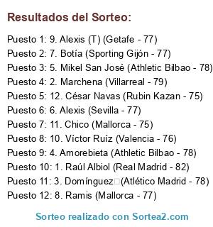 - Puesto 3: 5. Mikel San José (Athletic Bilbao - 78)