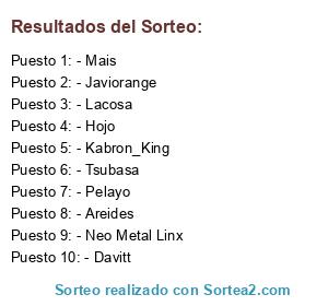Lista de participantes: - Areides, - Pelayo, - Davitt, - Neo Metal Linx, - Kabron_King, - Lacosa, - Tsubasa, - Mais, - Hojo, - Javiorange.