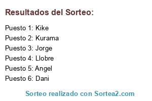 Lista de participantes: Jorge, Kike, Kurama, Angel, Llobre, Dani.