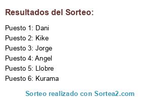 Lista de participantes: Jorge, Kike, Kurama, Angel, Llobre, Dani.