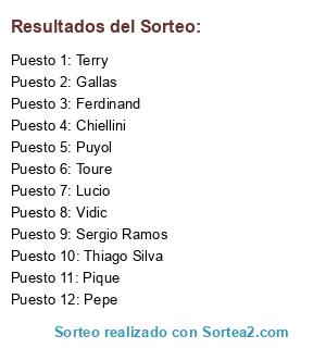 Lista de participantes: Thiago Silva, Puyol, Vidic, Chiellini, Lucio, Pique, Toure, Pepe, Terry, Gallas, Ferdinand, Sergio Ramos.