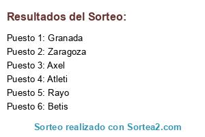 Lista de participantes: Betis, Granada, Rayo, Atleti, Zaragoza, Axel.