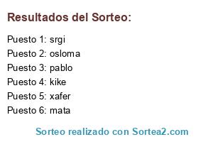 Lista de participantes: pablo, kike, osloma, srgi, xafer, mata.