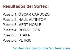 Lista de participantes: PETRIC, MERT NOBLE, HALIL ALTINTOP, UTAKA, RODALLEGA, ÓSCAR CARDOZO.