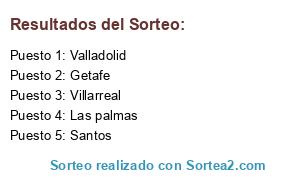 Lista de participantes: Valladolid, Villarreal, Santos, Las palmas, Getafe.