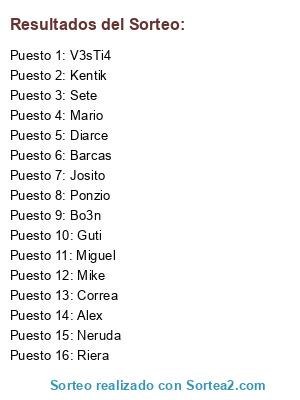 Resultados del sorteo:
