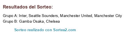 Lista de participantes: Chelsea, Bayern Munich, Gamba Osaka, Inter, Juventus, Manchester City, Manchester United, Olympique Lyon, PSG, Real Madrid, Seattle Sounders, Tigres.