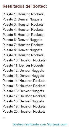 - Puesto 16: Denver Nuggets