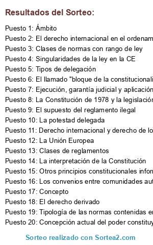 Tipo de sorteo: Sorteo del trabajo