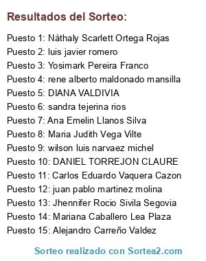Lista de participantes: Alejandro Carreño Valdez, Mirian Romero Gutierrez, rene alberto maldonado mansilla, Náthaly Scarlett Ortega Rojas, EDGAR FREDDY ECHENIQUE FIGUEROA, ANA YASMINA VARGAS DURAN, SARAH MONICA BERRIOS BARRETO, cesar gonzales gutierrez, Geraldine Escalante Tejerina, Sergio Pablo Mendoza Lopez, DANIEL TORREJON CLAURE, jam rolly cortez retamozo, Víctor Eddy Espinoza Quispe, luis javier romero, esteban manuel iriarte flores, Luis Fernando Ortiz Daza, Javier Miranda Honorio, DAGHMAR ATHENEA ROMERO AVILA, jorge luis muruchi salas, SAUL MAMANI IRAN, RONALD FERNANDEZ APARICIO, Ramón Edgardo Miranda, lorena cuellar mendoza, elvio erazo, ana patricia vergara vega, maria luisa bernal saracho, Mario R. Figueroa G., wilson luis narvaez michel, giovana sardina roca, Oscar Rios, MARGARITA R. SANCHEZ FERNANDEZ, KARIME TERRAZAS ANTEZANA, David Alberto Leaño Velasquez, Rodrigo Roberto Claure Reynolds, edson corine, LIA PIEROLA VACA, carola martinez, MARCELO ALPIRE RIVERO, Rogert Castillo Dávalos, FRAN AVALOS DURAN, Adriana Colodro Guerrero, alejandra, Ana Emelin Llanos Silva, henry menacho, Yamil Lizarraga, sandra tejerina rios, WILSON JEREZ, Ricardo Manuel Chavarria Raña, Teresa centellas Castrillo, carla lorena cisneros avendaño, Maria Judith Vega Vilte, luis alberto aban villena, América Tapia, cristian fernando cruz coria, Romina Auza, Adalid Israel Gutierrez Gonzales, Wilber Rosales, hugo Wilmar Aranibar Padilla, JUANA ESTELA DURAN, Paul Arnold Claure, Oscar Salinas Garcia, Grover R. Antezana Garzón, CRISTINA F.BAZAN AUZA, Emilio Urzagaste Borda, DIANA VALDIVIA, Maria Claudia Calderón Machicado, edgar rodrigo yevara valdez, rosalba liseth altamirano velasquez, HECTOR CARLOS VILCAA SEGOVIA, julio cesar leon aparicio, mabelin gira romero, FREDDY GUSTAVO CARVALLO FLOR, carla lucinda cisneros valdez, José Rodriguez Postigo, roberto carlos segovia fernandez, Mariana Caballero Lea Plaza, Benjamín Rodrigo Veramendi Estrada, O. Marcelo Argandoña Contreras, CARMEN JULIA VARGAS FLORES, Juan Martin Davila Quintela, Maria Isabel Rojas, Carlos Eduardo Vaquera Cazon, edwin montellano arnez, Yosimark Pereira Franco, Yamil Alejandro Rodriguez Estrada, Alvaro Gonzalo Romero Romero, rodrigo amezaga figueroa, yenny angela farfan gutierrez, juan pablo martinez molina, Erich Conzelmann Castellanos, Maiza Sandra Paz Aldana, Jhennifer Rocio Sivila Segovia, alejandro Añazgo villagomez.