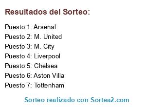 Lista de participantes: Arsenal, Aston Villa, Chelsea, Liverpool, M. City, M. United, Tottenham.