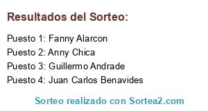 Lista de participantes: Fanny Alarcon, Juan Carlos Benavides, Anny Chica, Guillermo Andrade.