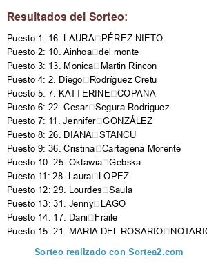 Lista de participantes: 1. Carmen Martin Crespo, 2. Diego Rodríguez Cretu, 3. GLEIXY DIAZ, 4. Adrian Lopez Parias, 5. JANIRE MUNEROL, 6. Ainhoa del monte, 7. KATTERINE COPANA, 8. Katherine Ochoa, 9. LUCIA MILAGROS CHAVEZ VALLADARES, 10. Ainhoa del monte, 11. Jennifer GONZÁLEZ, 12. Rudy Rocio JIMÉNEZ GONZALEZ, 13. Monica Martin Rincon, 14. Rocío Gabino Ayuso, 15. AGUSTIN DOMINGUEZ, 16. LAURA PÉREZ NIETO, 17. Dani Fraile, 18. Sergio Manzanares Sánchez, 19. Belén Flores, 20. Francisco Javier Navarrete Gutiérrez, 21. MARIA DEL ROSARIO NOTARIO ALOS, 22. Cesar Segura Rodriguez, 23. WEIXING Li, 24. MARIOLY GARCIA, 25. Oktawia Gebska, 26. DIANA STANCU, 27. DIANA STANCU, 28. Laura LOPEZ, 29. Lourdes Saula, 30. Holger Velez, 31. Jenny LAGO, 32. BEGOÑA GRAÑEDA MIÑÓN, 33. MARIA DEL ROSARIO NOTARIO ALOS, 34. Andrea Piedad Villalta Pardo, 35. Emiliano González Muñoz, 36. Cristina Cartagena Morente, 37. Diana Olmedo Muñiz.