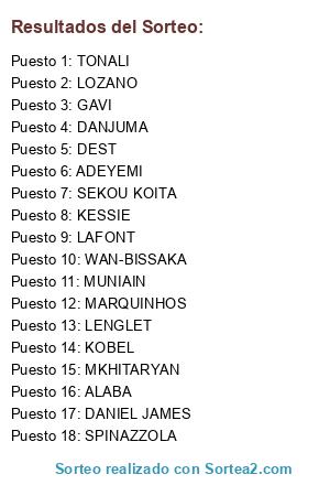 Lista de participantes: LAFONT, KOBEL, MARQUINHOS, ALABA, SPINAZZOLA, WAN-BISSAKA, DEST, LENGLET, KESSIE, TONALI, GAVI, MUNIAIN, DANIEL JAMES, DANJUMA, LOZANO, ADEYEMI, MKHITARYAN, SEKOU KOITA.