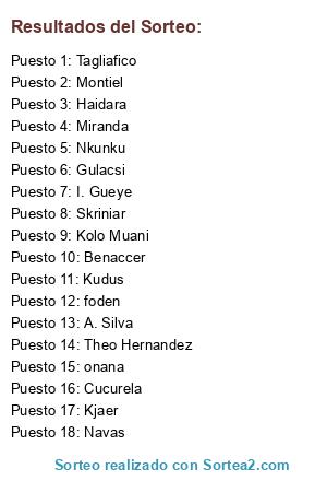 Lista de participantes: Gulacsi, onana, Montiel, Navas, Tagliafico, Cucurela, Miranda, Kjaer, Theo Hernandez, Skriniar, Kudus, Benaccer, I. Gueye, Haidara, A. Silva, Kolo Muani, Nkunku, foden.