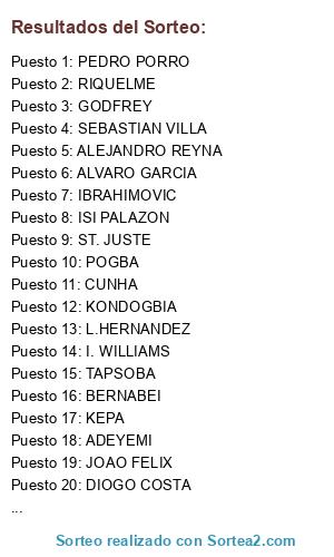 Lista de participantes: KEPA, DIOGO COSTA, L.HERNANDEZ, ST. JUSTE, TAPSOBA, GODFREY, PEDRO PORRO, BERNABEI, KONDOGBIA, ALEJANDRO REYNA, ALVARO GARCIA, JOAO FELIX, COUTINHO, ISI PALAZON, POGBA, RIQUELME, I. WILLIAMS, ADEYEMI, SADIQ, CUNHA, SEBASTIAN VILLA, IBRAHIMOVIC.