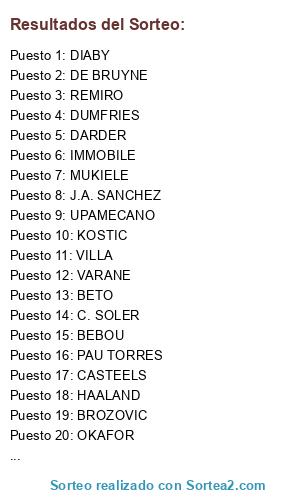 Lista de participantes: CASTEELS, REMIRO, BAH, J.A. SANCHEZ, UPAMECANO, DUMFRIES, VARANE, PAU TORRES, SANUSI, MUKIELE, C. SOLER, KOSTIC, DARDER, BROZOVIC, DE BRUYNE, DIABY, BEBOU, OKAFOR, IMMOBILE, BETO, VILLA, HAALAND.