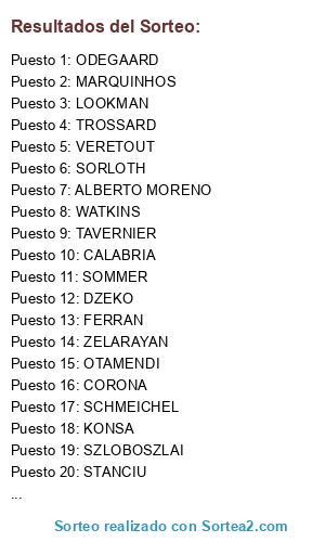 Lista de participantes: SOMMER, SCHMEICHEL, MARQUINHOS, KONSA, OTAMENDI, ALBERTO MORENO, ALEX TELLES, TAVERNIER, CALABRIA, STANCIU, VERETOUT, TYLER ADAMS, TROSSARD, ODEGAARD, ZELARAYAN, LOOKMAN, SZLOBOSZLAI, WATKINS, DZEKO, FERRAN, CORONA, SORLOTH.