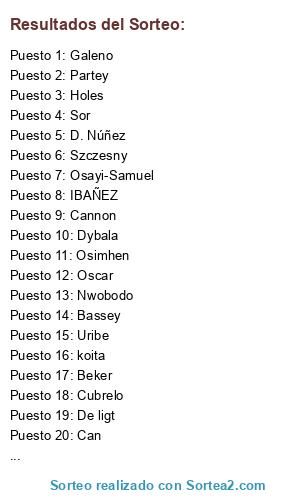Lista de participantes: Szczesny , Mignolet, Bassey , De ligt, Militao, Cubrelo, Cannon, Osayi-Samuel , IBAÑEZ, Partey, Can, Uribe, Holes, Nwobodo, Oscar, Galeno, Dybala, Osimhen , D. Núñez , Sor, Beker, koita.