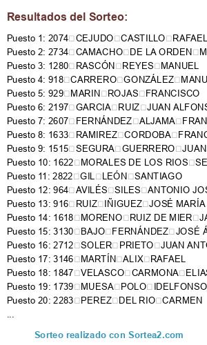 Resultados del sorteo: