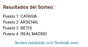 Lista de participantes: AJAX, BETIS, CATANIA, GETAFE, REAL MADRID, CELTIC, ARSENAL, BILBAO.