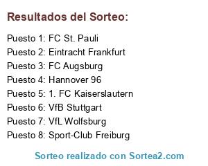 Lista de participantes: VfL Wolfsburg, FC St. Pauli, 1. FC Kaiserslautern, VfB Stuttgart, Hannover 96, FC Augsburg, Sport-Club Freiburg, Eintracht Frankfurt.