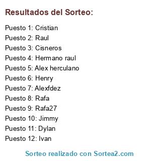 Resultados del sorteo: