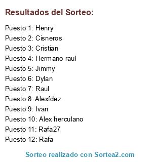 Lista de participantes: Jimmy, Raul, Dylan, Hermano raul, Rafa, Rafa27, Henry, Alex herculano, Alexfdez, Cisneros, Cristian, Ivan.
