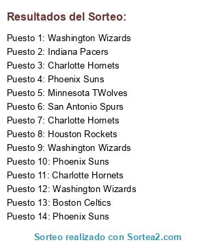 Lista de participantes: Boston Celtics(5), Charlotte Hornets(7), Dallas Mavericks(2), Golden State Warriors(2), Houston Rockets(11), Indiana Pacers(3), Miami Heat(6), Milwaukee Bucks(1)2, Minnesota TWolves(3), New Orleans Pelicans(13), New York Knicks(2), Phoenix Suns(7), San Antonio Spurs(11), Washington Wizards(14).