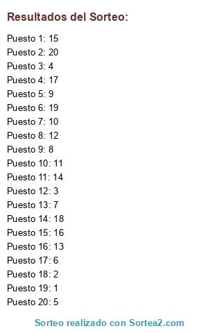 Lista de participantes: 1, 2, 3, 4, 5, 6, 7, 8, 9, 10, 11, 12, 13, 14, 15, 16, 17, 18, 19, 20.