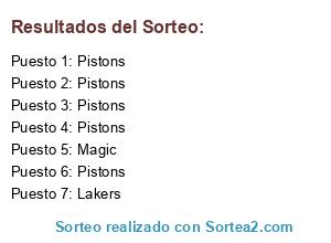 Lista de participantes: Hawks(25), Heat(14), Knicks(46), Lakers(28), Magic(23), Nuggets(36), Pistons(175).