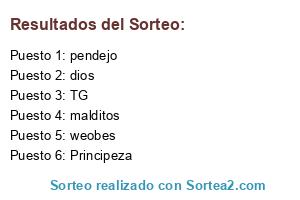 Lista de participantes: Principeza, TG, pendejo, sabe, dios , XD, malditos , weobes.