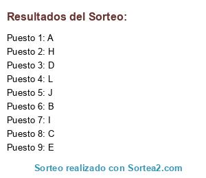 Resultados del sorteo: