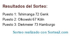 Lista de participantes: Olkowski 67 Köln, Diekmeier 73 Hamburgo, Tshimanga 72 Genk.